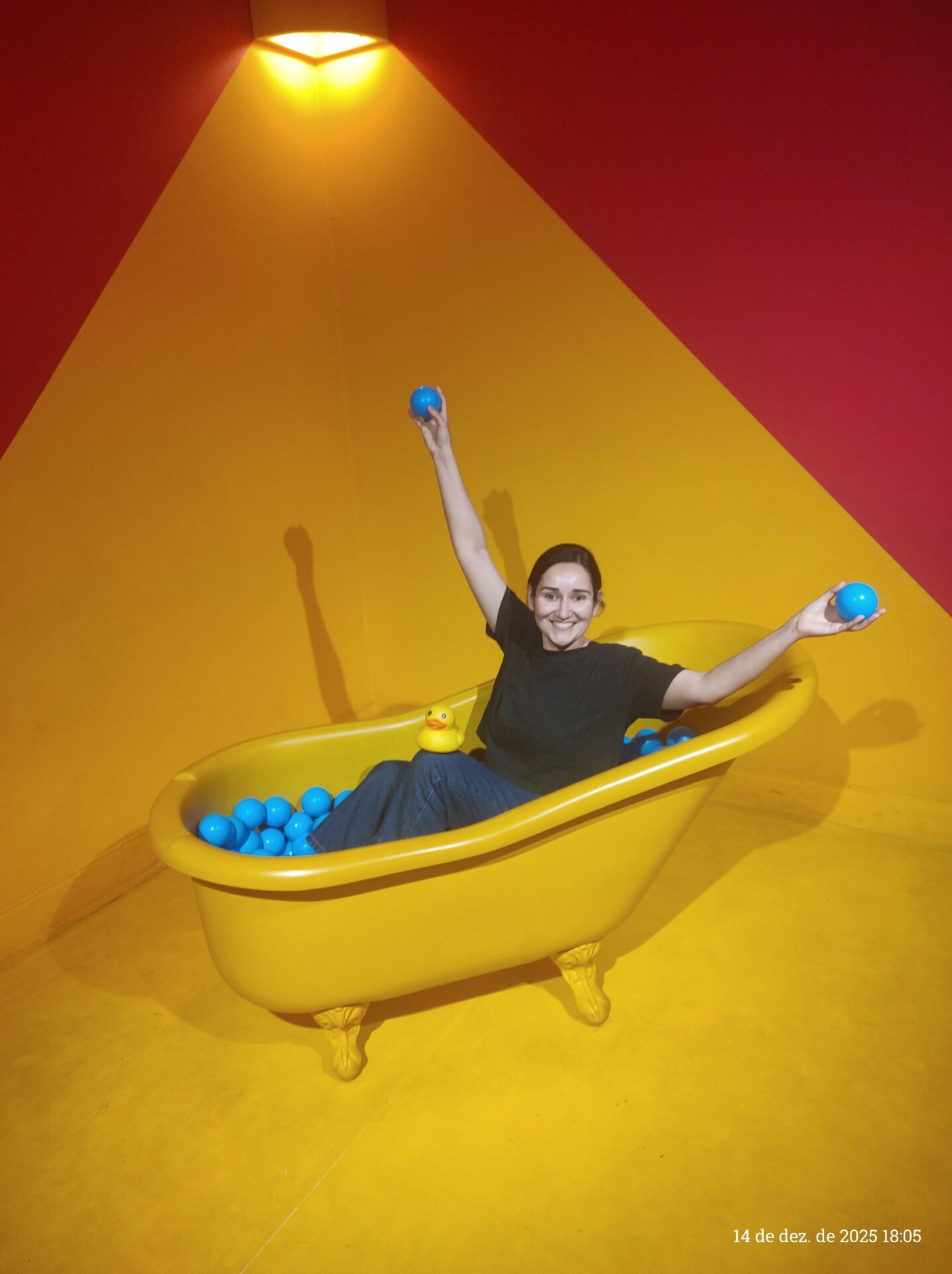 Um studio para fotos na banheira amarela.