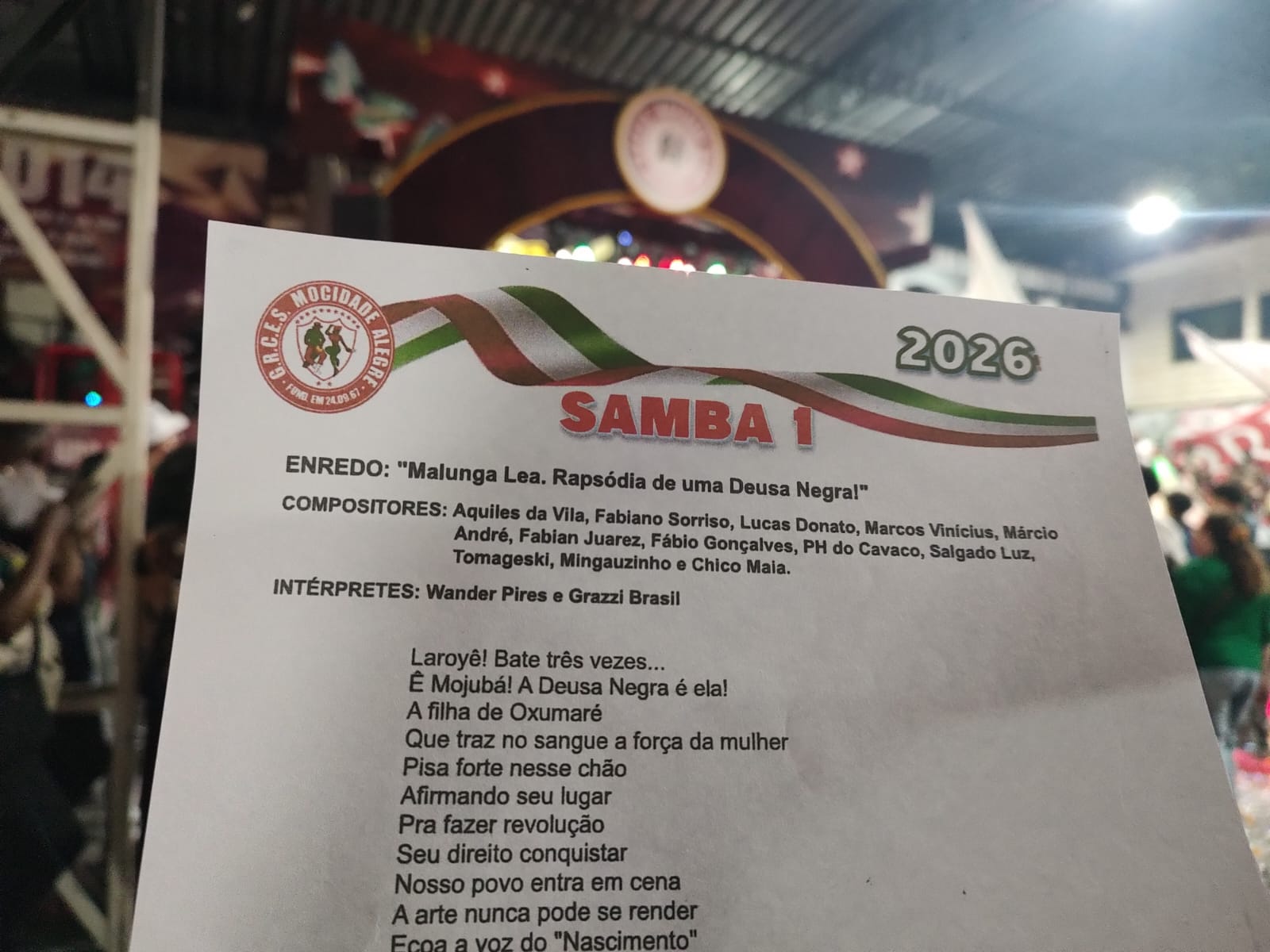 O enredo de 2026, “Malunga Lea. Rapsódia de uma Deusa Negra!”, começou a ganhar vida nos corpos em movimento e na voz poderosa de Igor Sorriso. A quadra vibrava a cada estrofe, num ensaio que mais parecia um espetáculo. Famílias inteiras, jovens, simpatizantes e ritmistas dividiram o mesmo espaço com um só propósito: fazer da Mocidade Alegre mais uma vez protagonista do carnaval paulistano.